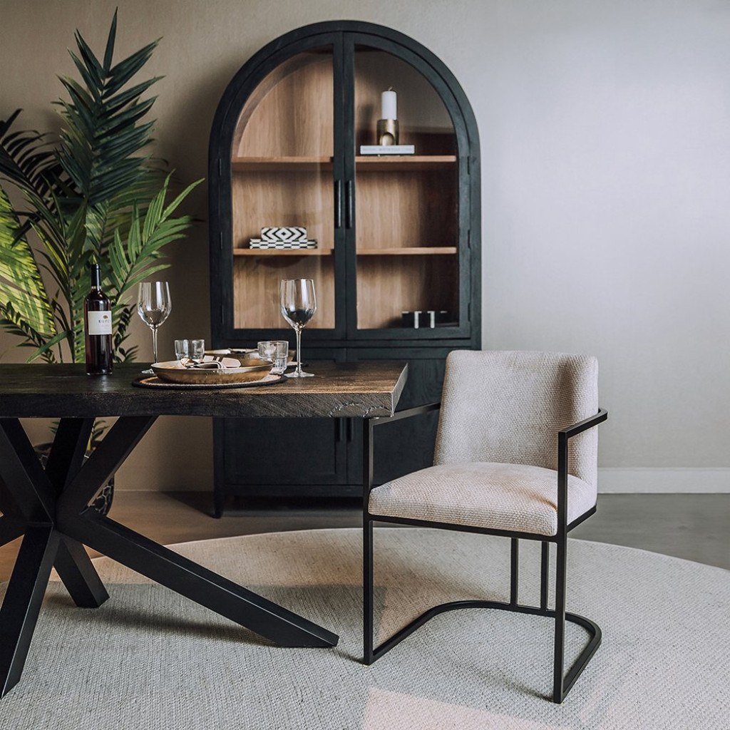 Breng stijl, comfort en extra ondersteuning samen in je eetruimte met de Archi eetkamerstoel met armleuning Cream.
