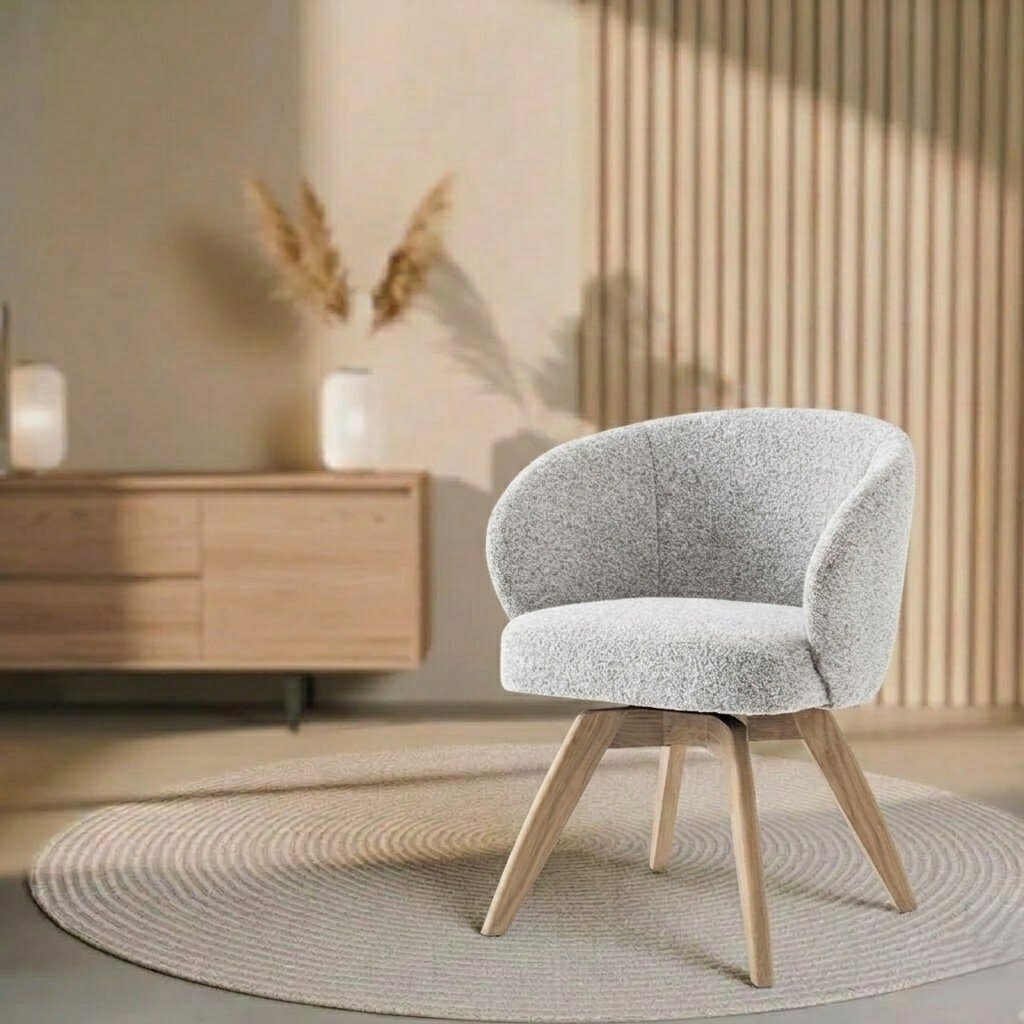 Wat deze stoel echt bijzonder maakt, is het stevige frame van massief eikenhout, dat niet alleen zorgt voor een natuurlijke en luxe uitstraling, maar ook voor stabiliteit en duurzaamheid. De draaibare zitting voegt een extra laag gebruiksgemak toe, perfect voor lange diners of flexibel gebruik in een vergaderruimte.