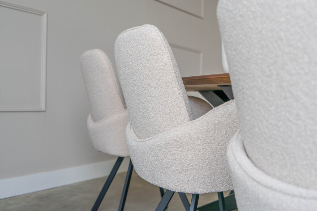 Massief eiken eettafel KENZO heeft een leuk uniek blad, namelijk half ovaal, en de rand van het 4 cm dik massief eiken blad, is verjongd (afgeschuind). Wat zorgt voor een verfijnde uitstraling.
