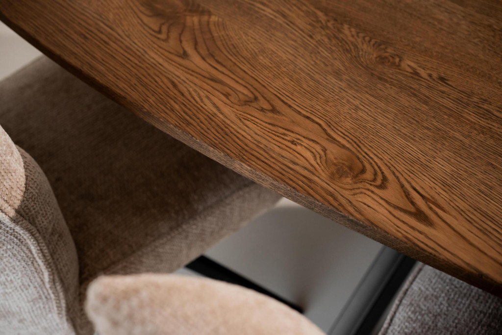 Op zoek naar een eettafel die modern, uniek en vol karakter is? Onze kiezelvormige eettafel, met een 4 cm dik massief eikenblad, is handgemaakt bij Massive Wood en brengt precies dat in je interieur. Het organische, kiezelvormige blad met verjongde rand geeft je eetkamer een natuurlijke, speelse én verfijnde uitstraling, terwijl het stevige massief eikenhout zorgt voor duurzaamheid en een tijdloze kwaliteit.
