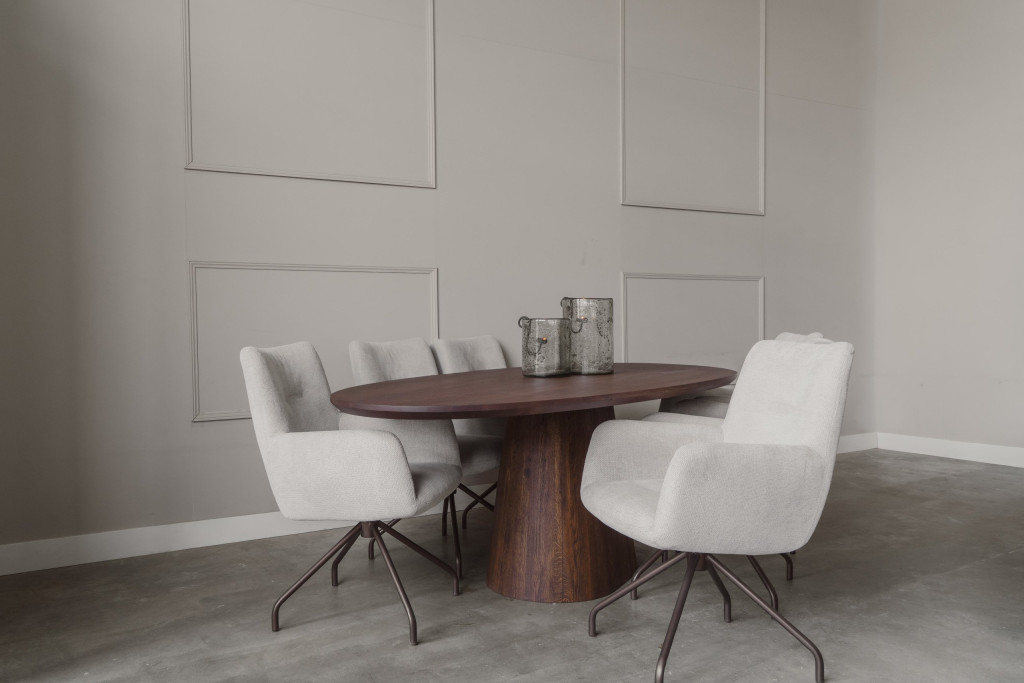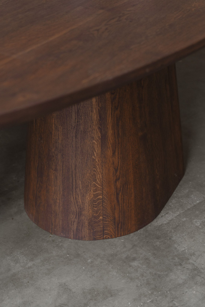 Met haar lichte lijnen en natuurlijke materialen brengt de LUMI de essentie van Scandinavisch en Japandi design in huis: puur, rustig en in balans. Het organische, leaf‑vormige blad van massief eiken maakt van deze tafel een echte blikvanger. De stevige, robuuste tonpoot geeft de tafel kracht en duurzaamheid, terwijl de elegante vorm het geheel verfijnd en stijlvol houdt.