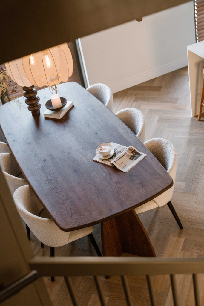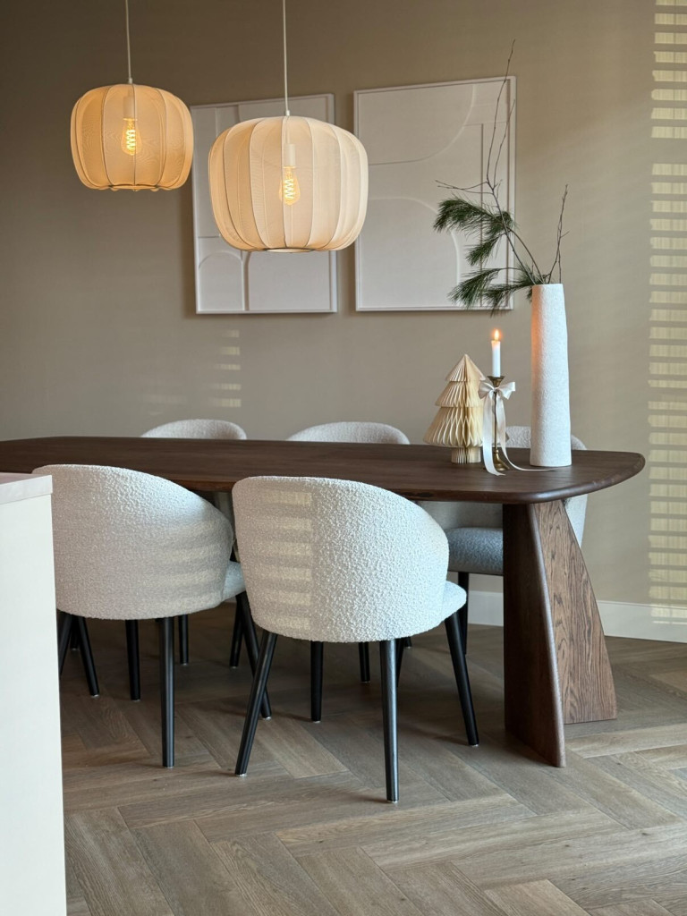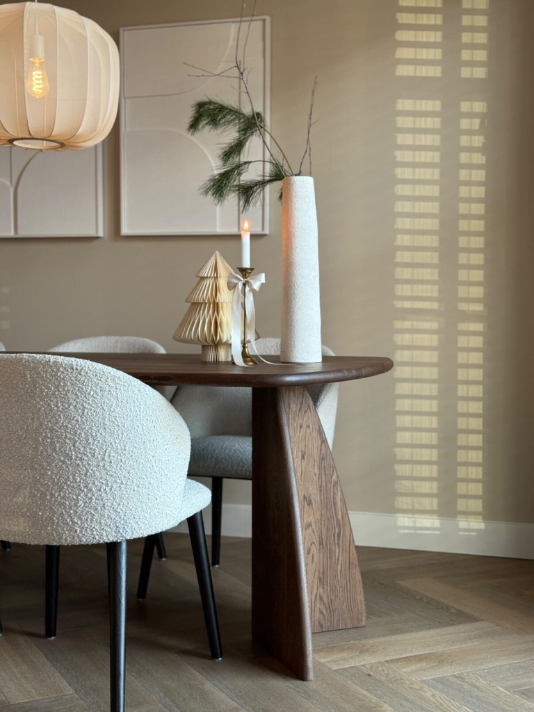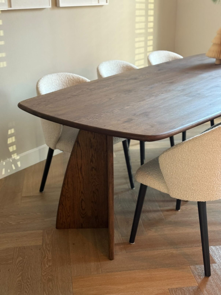 De Eettafel NOVA is een prachtig meubelstuk dat luxe en kwaliteit uitstraalt. Met zijn zachte rondingen en mooie, verfijnde vormen past hij in zowel moderne als gezellige, natuurlijke interieurs.