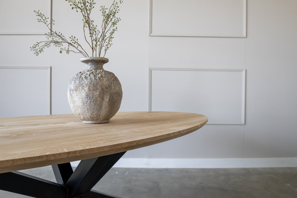 ONDERSTEL VAN EIKEN EETTAFEL OVAAL VERJONGD STONE | MASSIVE WOOD