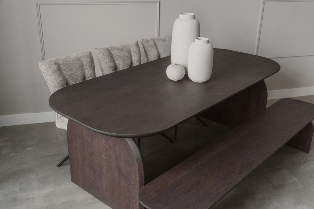 Het mooie 4 cm dikke massief eiken half ovale blad met verjongde rand en half ovale poten is uniek en volledig handgemaakt van eikenhout.BLAD BEHANDELING VAN EIKEN EETTAFEL WINDSOR | MASSIVE WOOD