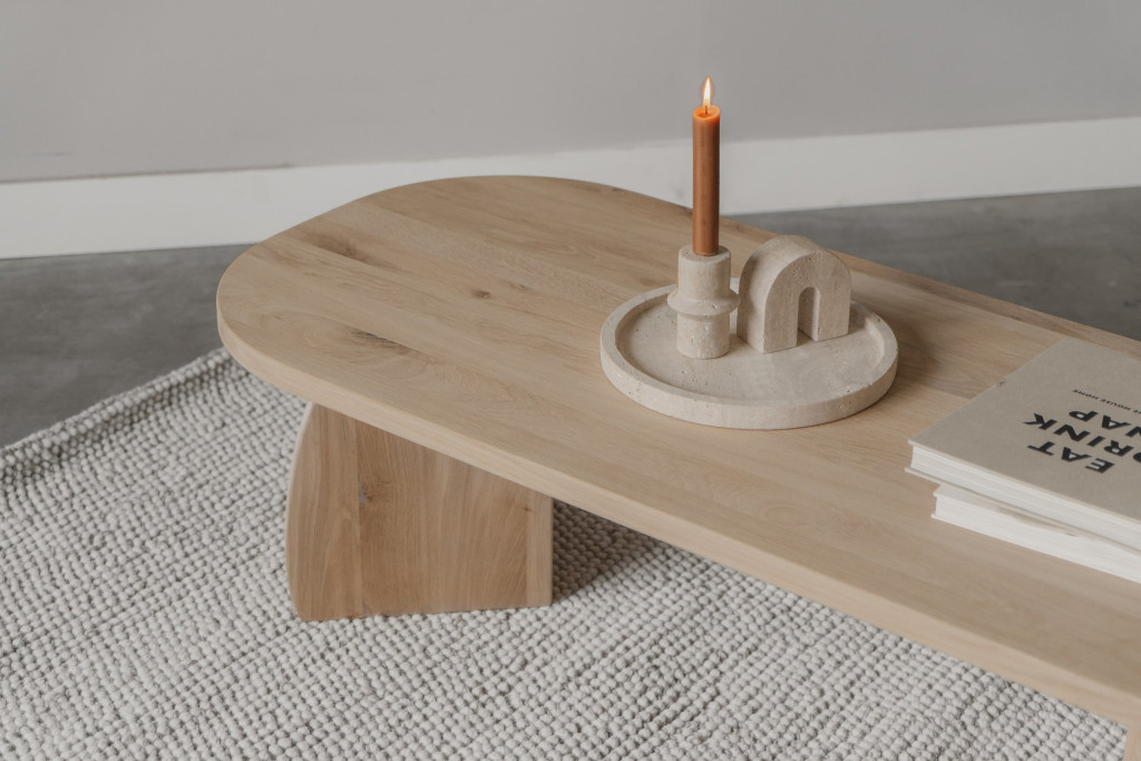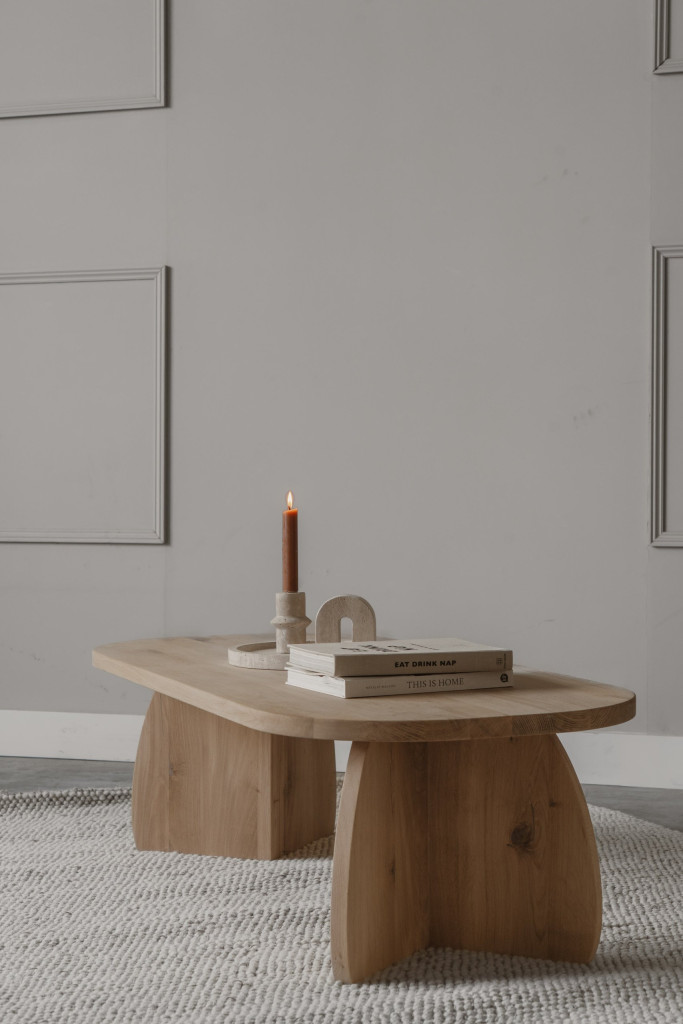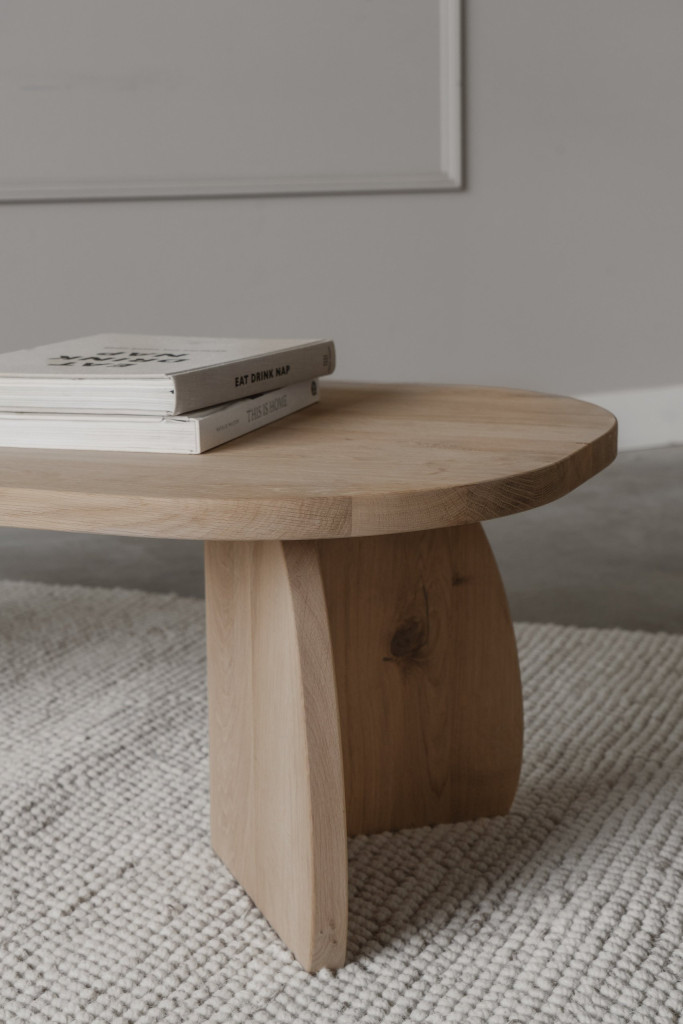 Breng sfeer, elegantie en een warme natuurlijke touch in je woonkamer met de handgemaakte eiken salontafel Ascot.