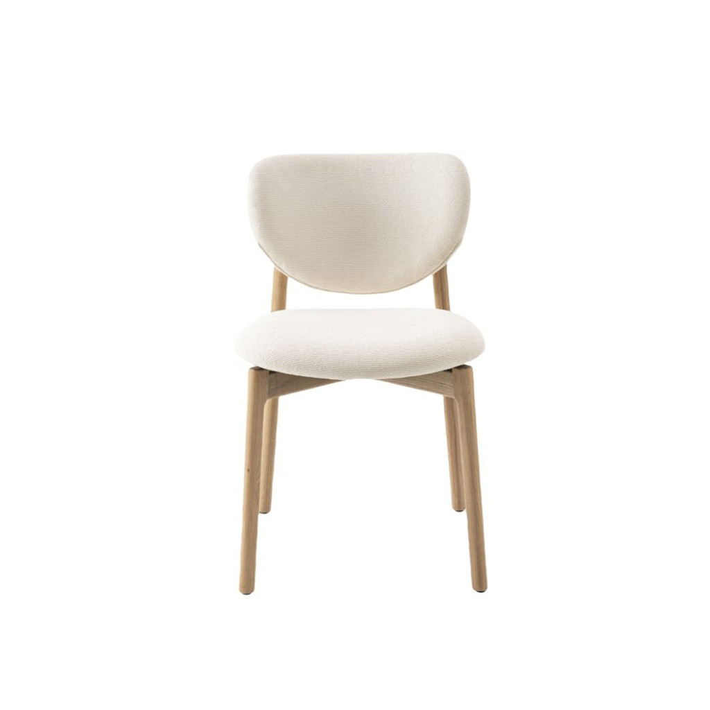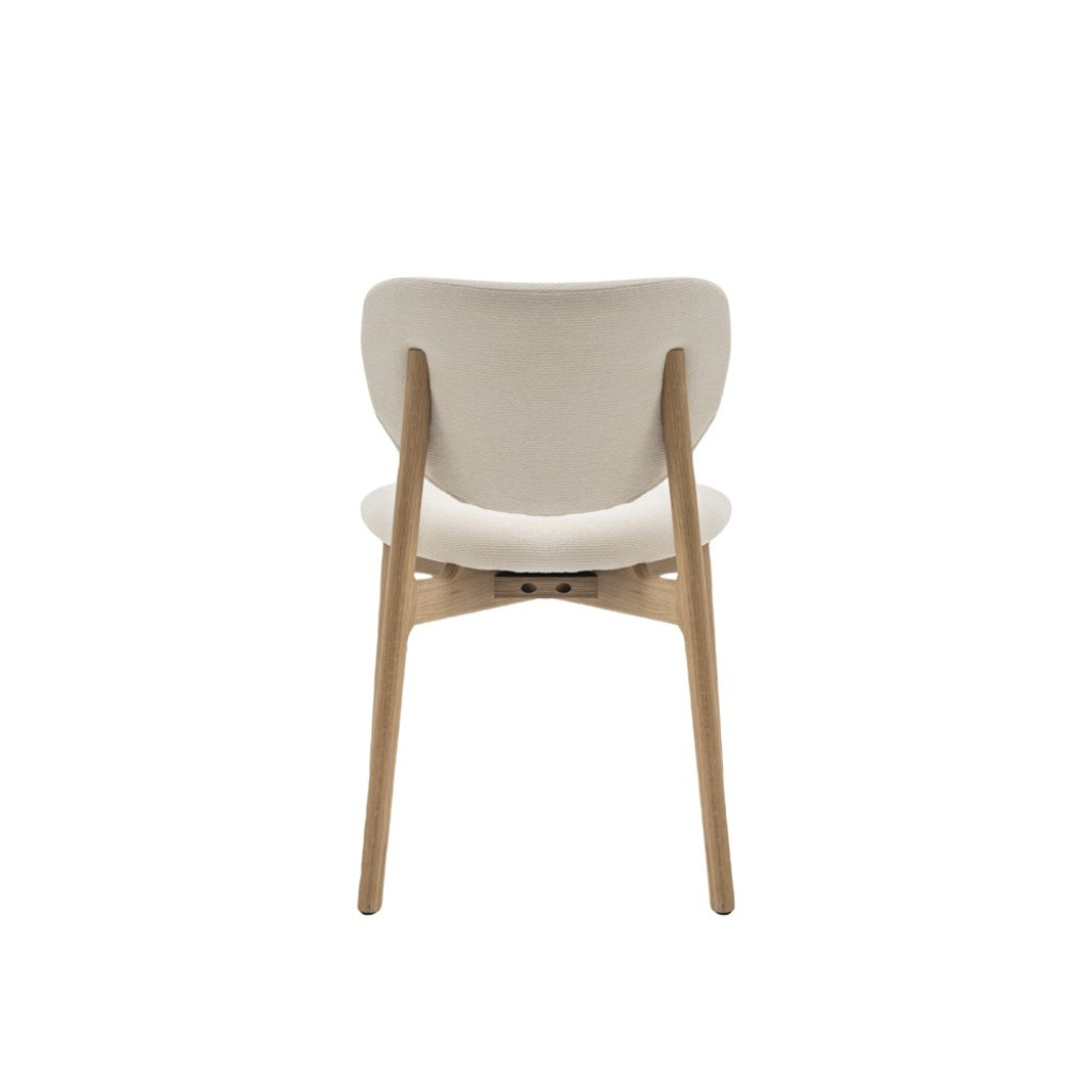 Het houten onderstel maakt de natuurlijke japandi look compleet. Met een breedte van 49 cm, is de stoel geschikt voor alle type eettafels
