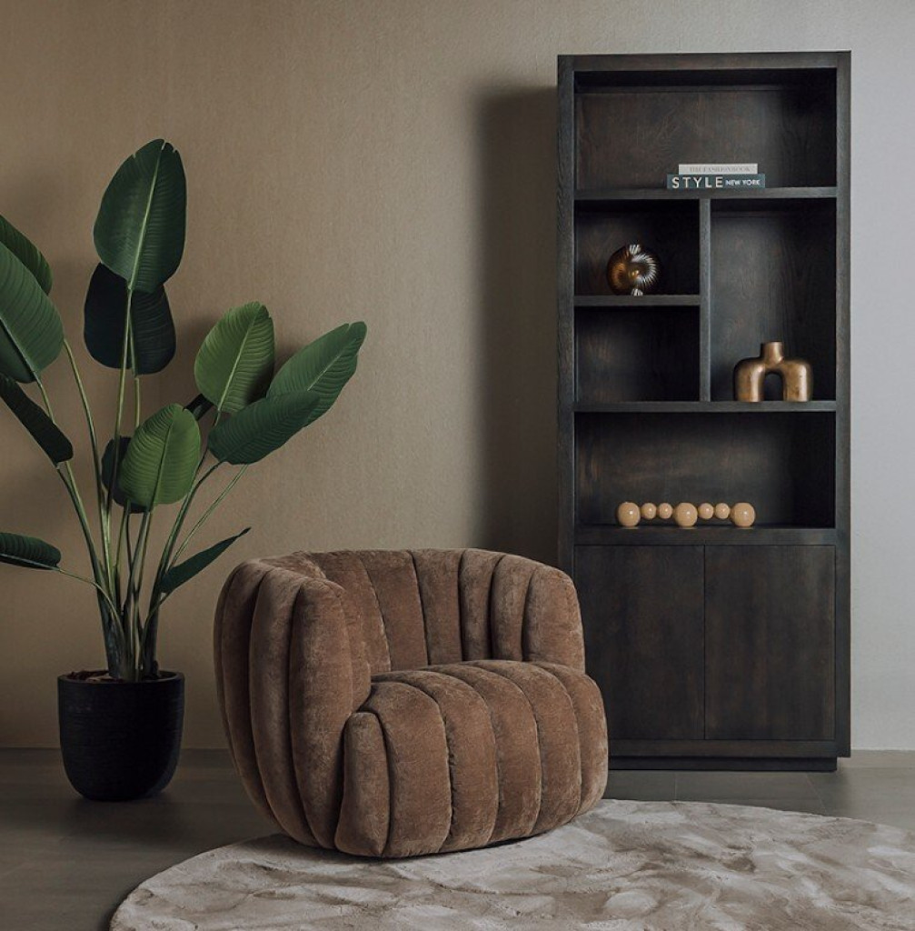 De zachte stof en het sculpturale design maken deze fauteuil tot een sfeervol statement in de woonkamer, leeshoek of slaapkamer. Combineer hem met natuurlijke materialen, warme tinten en houten meubels voor een rustige en luxe uitstraling.