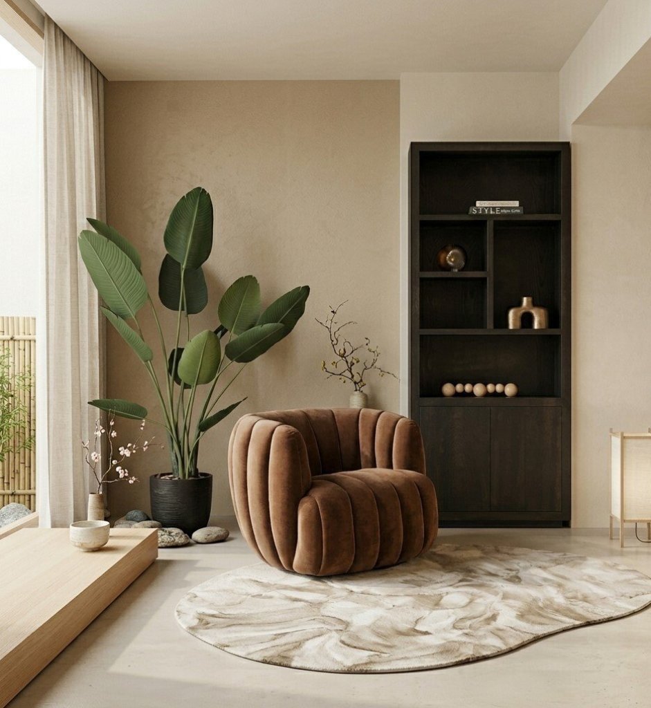 De zachte stof en het sculpturale design maken deze fauteuil tot een sfeervol statement in de woonkamer, leeshoek of slaapkamer. Combineer hem met natuurlijke materialen, warme tinten en houten meubels voor een rustige en luxe uitstraling.